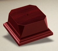 Rödbrun elegant träsockel med fasade kanter och avsats i basen. Den passar bra till många olika ändamål. Bygg ut din pokalmed en snyggare fot. Denna sockel finns i 8 storlekar.
